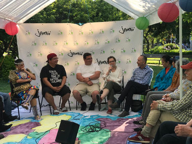 In June 2019, with the support of Canadian Heritage, we invited one artist from each of the three Ontario communities Jamii is partnering with: Brian Outinen (Wawa/Michipicoten First Nation), Terri-Lynn Brennan (Wolfe Island) and Lucy Strang (Pikangikum First Nation). The artists spent a week on The Esplanade and directly engaged with 300 locals of all ages.