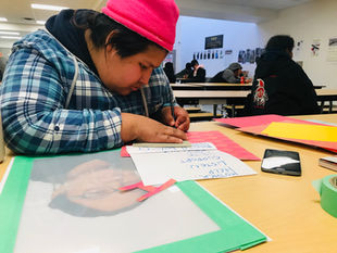We partnered with the Pikangikum Education Authority and Eenchokay Birchstick School to invite people to create a portrait of fellow community members. In total, we created 18 portraits, involving 36 people in the project.
